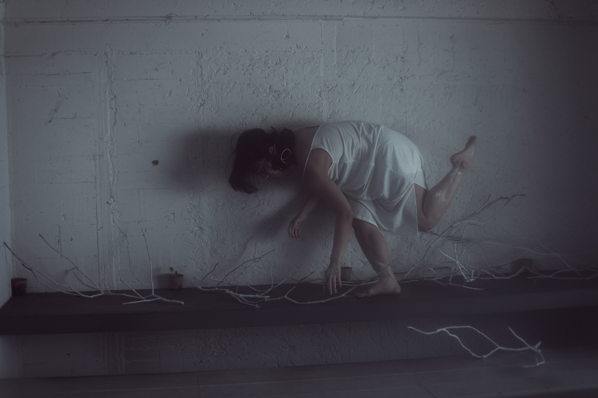 502号室の中で、めぐって繋がっていく生命を想いながら、枯れたナスの枝や、種を播いて育っていく小松菜を用いて表現しました。実際に育った小松菜を皆さんで食べたり、苗を配って育てていただいたり。